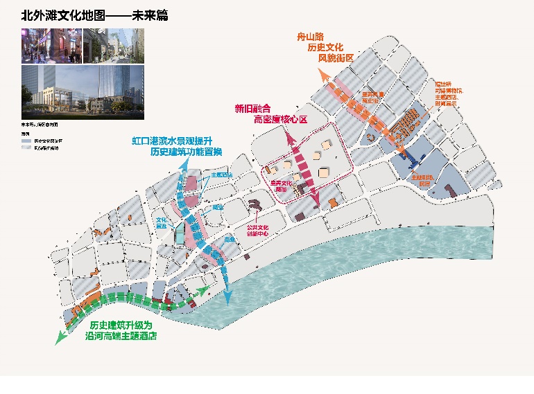 从城市记忆到外交风云,从工业记忆到海上方舟,课题组进行了深入城市理论研究,不仅呈现出北外滩地区的悠久历史和丰富的文化底蕴,让人们能够深入了解这个地区的历史沿革和文化传承,同时还展示出北外滩的发展方向和规划愿景,引领北外滩的可持续发展,促进城市文化的繁荣和创新。