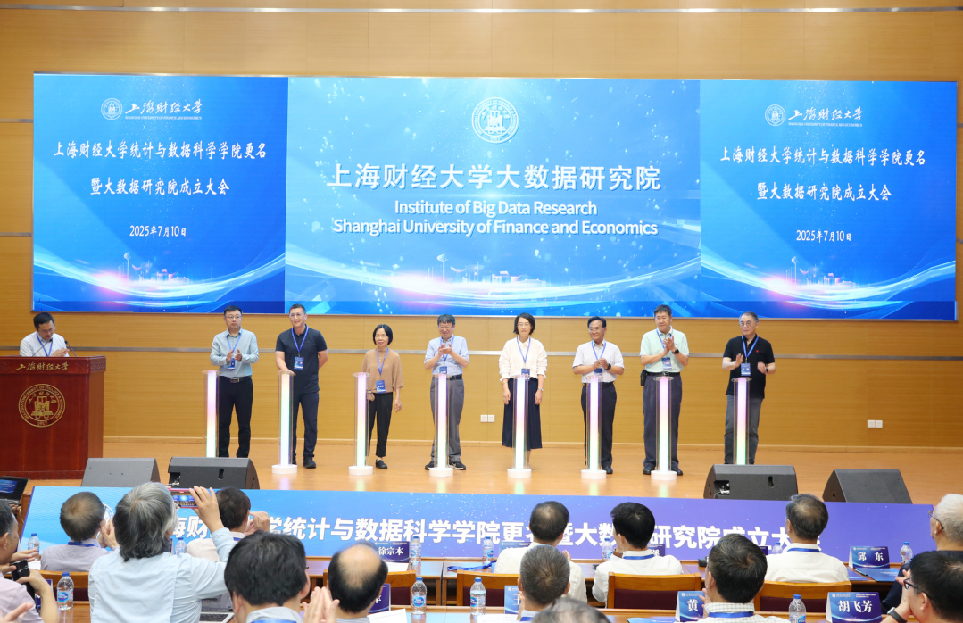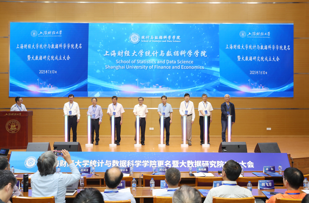 2025年7月10日,上海财经大学统计与数据科学学院揭牌暨大数据研究院成立大会在校举行。西安交通大学徐宗本院士、清华大学陈松蹊院士、普林斯顿大学范剑青教授、圣路易斯华盛顿大学何旭铭教授、统计学者许宪春等多位国内外资深教授以及来自北京大学、中国科学院、复旦大学、上海交通大学、香港大学、香港科技大学、香港理工大学、中国人民大学、南开大学等高校的近百位专家学者和金文忠、杨青等20余位学院杰出校友代表莅临大会。上海财经大学校长刘元春、副校长靳玉英,学校相关职能部门领导出席活动。会议由统计与数据科学学院院长冯兴东主持。