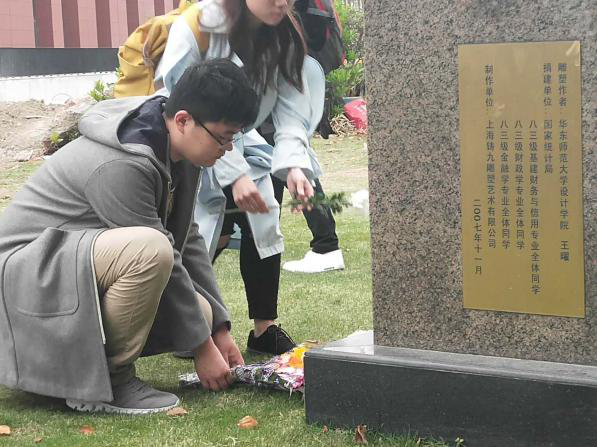 随后,学员们来到了情人坡草坪,为模范共产党员、著名经济学家、老一辈无产阶级革命家孙冶方的雕像献花。在主持人的介绍中,学员们了解到先生年轻时加入社会主义青年团、中国共产党,后赴莫斯科中山大学学习,再回国从事工人运动和左翼文化运动,建国后历任国家统计局副局长、中国科学院经济研究所所长、经济研究所顾问等职的不凡一生。同学们纷纷受到震撼,表达了对党和革命先烈的崇敬之情和对祖国的热爱之情。他们表示,要以革命先烈为榜样,学习他们不畏艰难革命精神;作为大学生,除了要具备丰富的科学文化知识,还要有良好的道德品质,将来才能更好地为社会做贡献。随后全体立正,为孙先生默哀一分钟,统计和人文学院的学员代表献上了手中的鲜花。