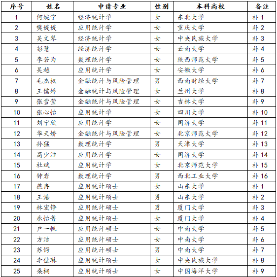 2018“上财统计夏令营”入营名单公示