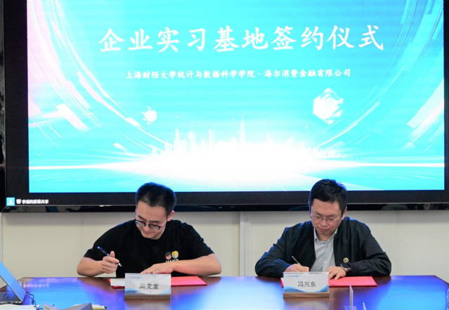 此次“上财-海尔消金”实习基地签约仪式的顺利举行,是统计与数据科学学院与海尔消费金融有限公司合作的重要里程碑。未来,双方将以基地为纽带,在优质人才定向输送、企业真实业务问题转化为教学案例与科研课题等方面开展深度合作,共同探索产教融合新范式。校企双方均表示,将以此次合作为起点,持续拓宽产学研融合路径,为金融科技领域培育更多具备专业素养与创新能力的卓越人才,为行业高质量发展注入新动能。