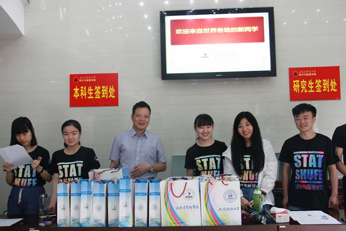 微风飒爽,时近中秋,又是一年迎新季,又是一年忙碌时。2016年9月8日早上七点,上海财经大学统计与管理学院的领导老师和团学联的主席、部长们就已聚集在统计与管理学院主楼内,准备迎接2016级大一新生和研究生的到来。