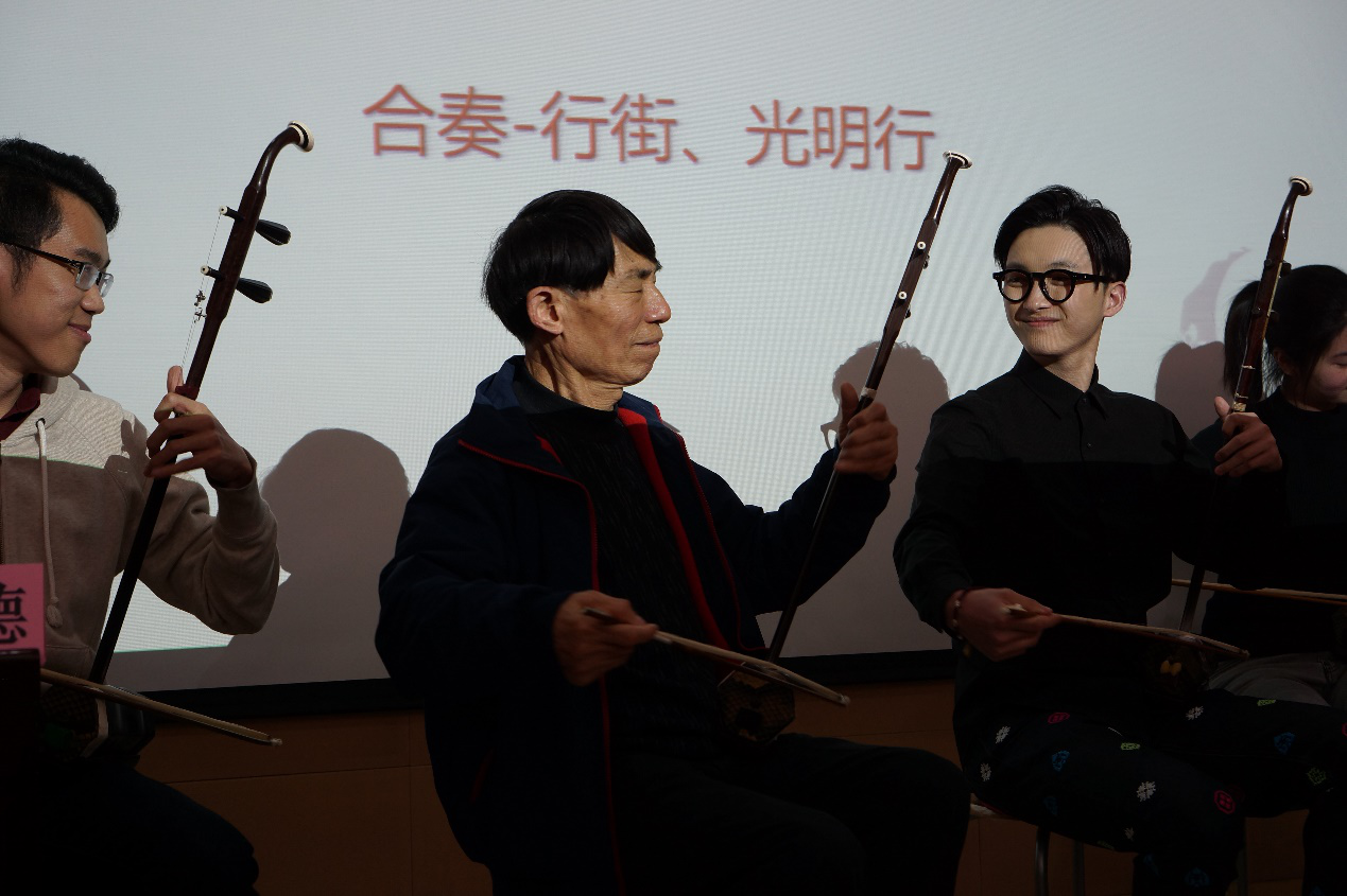 讲座一开始,他们演奏了两首中国民乐的经典曲子——《行街》、《光明》,平民文化代表《行街》细腻的江南文化让大家心情明媚起来,而精英文化代表《光明行》让我们感受到二胡的铿锵有力。
