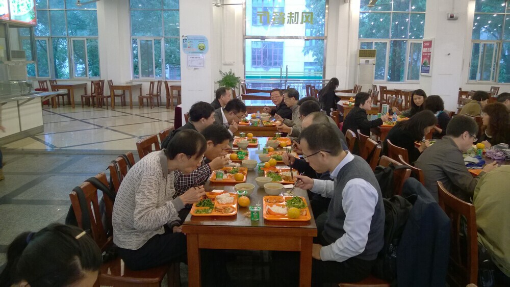 下图是中午时分,大家再次坐回到财大的学生食堂,感受当年的学校生活。